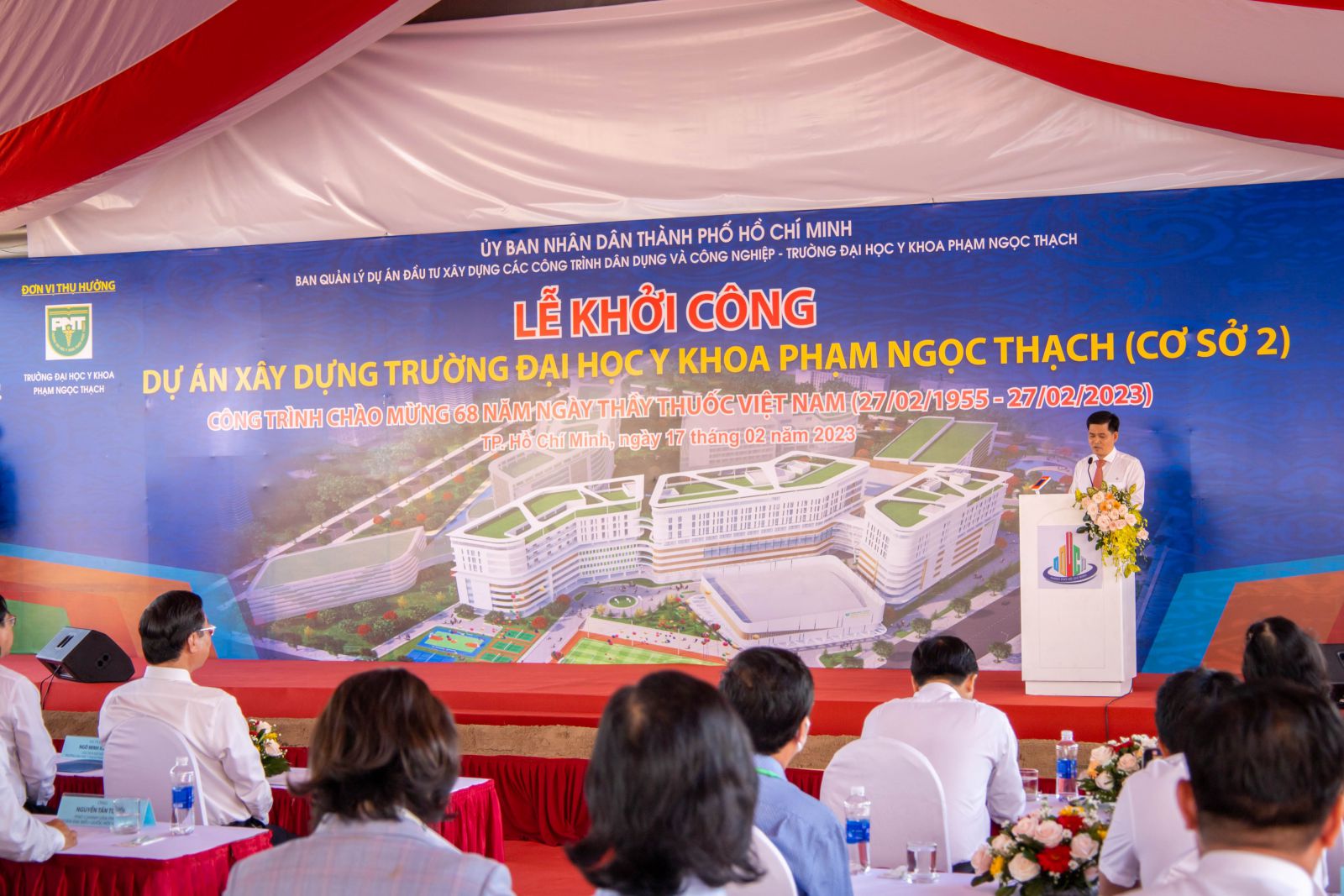 Sáng ngày 17/02/2023, Lễ khởi công xây dựng công trình Trường Đại học Y Khoa Phạm Ngọc Thạch (Cơ sở 2) đã được long trọng diễn ra tại Cụm Y tế Tân Kiên (Huyện Bình Chánh, TP. HCM). Buổi lễ có sự tham gia của Đại diện Lãnh đạo Thành ủy, Hội đồng nhân dân, Ủy ban nhân dân Thành phố Hồ Chí Minh; Đại diện Lãnh đạo các Sở, Ban, Ngành và các đơn vị báo chí cùng Chủ đầu tư, Liên danh nhà thầu và các đơn vị tư vấn.